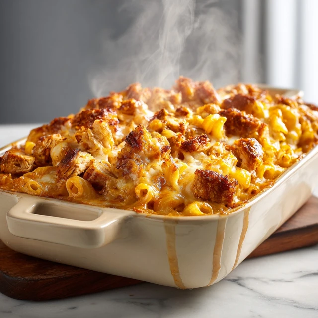 Hot Honey Pretzel Chicken Mac & Cheese Bake – The Ultimate Sweet, Spicy & Cheesy Comfort Dish
